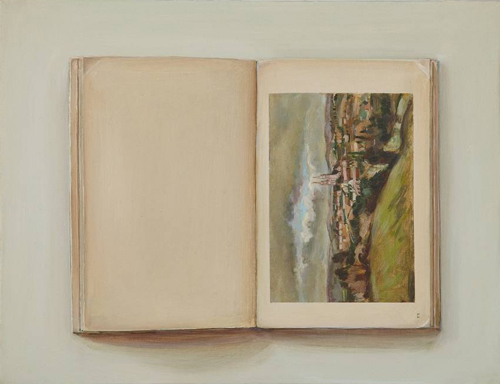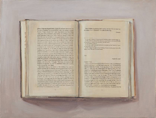 Jen Mazza. "Dear Tania (Gramsci, pages 90-91)," 2011. Oil on canvas. 13 x 17 inches. Courtesy of the artist.