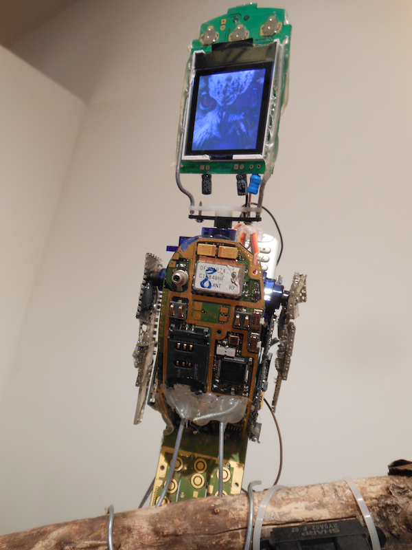 Escape, an installation piece by U.K. artists Neil Mendoza and Anthony Goh, turns cell phone parts into birds; each contains an Arduino microcontroller, an open-source electronic prototyping platform that allows artists to create interactive electronic art. When hooked up to the cell network in Europe, the birds can take and make phone calls. At 516 Arts they have been reprogrammed to react to the proximity of people approaching them. According to an artist’s statement, Escape is “about taking the worst of modern life – disposable unwanted phones and unwanted noises – and turning them into something beautiful.” David Cudney’s String Theory (on view at the Factory on 5th Art Space) explores several ISEA2012 sub-themes, using “low-tech” machines to create a frenetic yet meditative environment. The conference sub-themes include Radical Cosmologies (the Cosmos), Econotopias (Creative Economies), Trans-Species Habitats (Wildlife), Dynamobilities (Transportation), and Gridlocked (Power).
