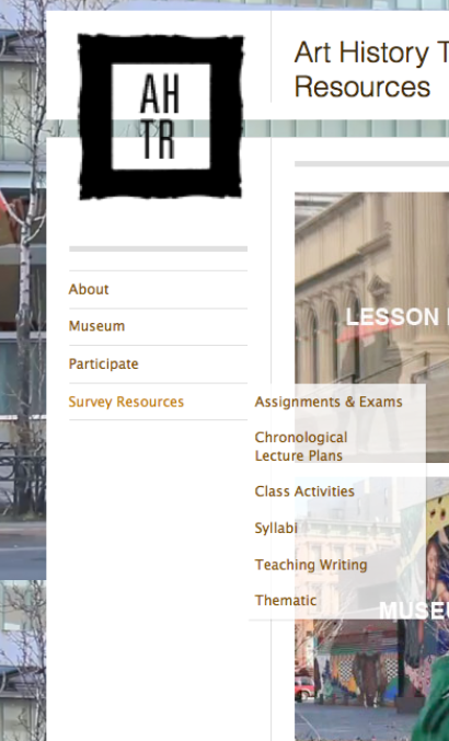 Cut to two years later, and I have almost finished building phase one of a website for sharing teaching resources. At SECAC, I co-chaired a panel titled The Museum and the Art History Survey Requirement with my colleague at Baruch College, Professor Karen Shelby, who has pioneered an awesome museum video project that the AHResources site will host. I shared my motivations for building the AHResources platform for art history survey teachers and my hopes for its final incarnation, and I got a lot of great feedback, critiques, suggestions, and questions. Last time I posted about this project on Art 21, I also got lots of great feedback for which I was truly grateful. One commenter suggested that this type of centralized resource was obsolete as there are so many resources already available online. While I agree that there are a range of materials already out there – from British Museum Director Neil MacGregor’s A History of the World in 100 Objects, to the truly awesome Smarthistory, and the Met Timeline of Art History, for a start – the culling of these resources into a thoughtful thematic lesson plan is what takes time, and what I want to short cut for time-short teachers. If we have access to a basic set of materials when we start out, we have more time to think about alternative teaching strategies. The lesson plans I have gathered so far gesture to many existing resources, including suggested short readings for students, at-home and in-class videos, and class activity templates. Other readers were more receptive to the idea of giving teachers basic tools. As one commenter pointed out, “so many of those who teach survey courses have no experience or training in teaching methods, a baffling irony of American higher education.” Another discussant rightly chided me for not doing more to support an interactive, participatory design process at this early stage, reminding me that any such platform should always work in “perpetual beta”–and so, more on this in a minute.