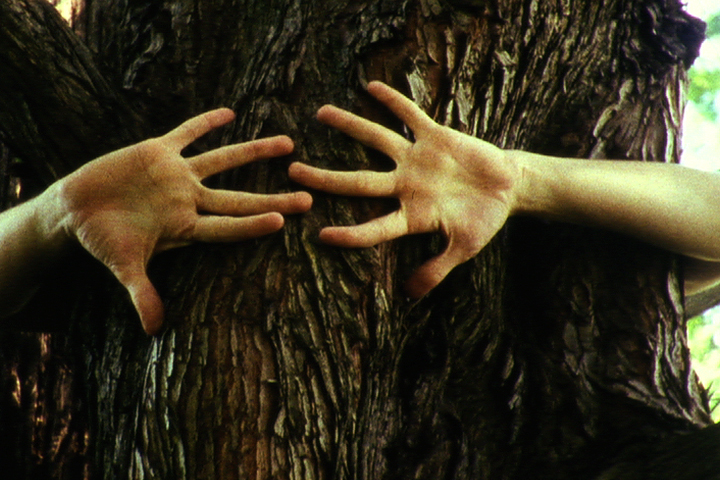 All three of these sets of films had something to do with nature and history, either somewhere in their content or the screening location. Lori Felker’s 16mm film Mere Mystery (2010) tours through Muir Woods with field recordings of a family outing, signage indicating that these trees were featured in Ripley’s Believe It or Not, vague tour guide references to the woods’ pre-colonial inhabitants, a ride through a skylift, and sequences of choreographed tree groping that are reminiscent of Anna Halprin’s outdoor dance work.