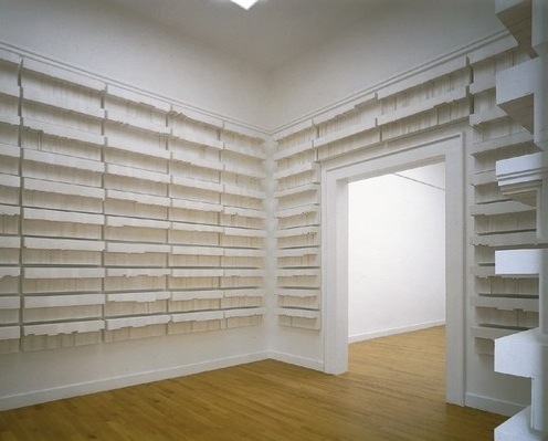 Rachel Whiteread. “Untitled (Paperbacks),” 1997. Plaster and steel. 15 x 16 x 20′ as installed at MoMA