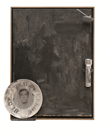 Jasper Johns. “Souvenir,” 1964. Encaustic on canvas with objects. 28 3/4 x 21 in. (73 x 53.3 cm). Collection of the artist, extended loan to the San Francisco Museum of Modern Art; © Jasper Johns/Licensed by VAGA, New York, NY.