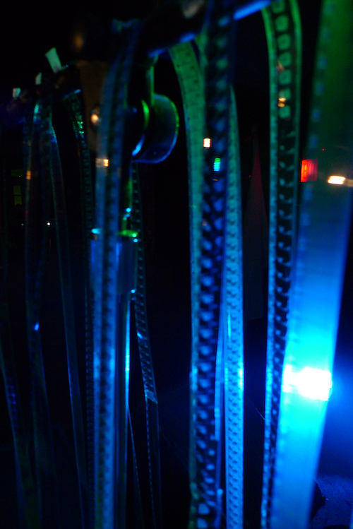On May 20, 2011, I bolted up the stairs of my favorite experimental music venue in Chicago for the premier performance of Lori Felker’s Light Makes Music. I had no idea what to expect, but I was told it would be noisy and there would be analogue film, which is about all I need to hear to get my blood pumping. With three projectors and over a dozen loops as her instruments, Lori loads and unloads films, alters the sound heads and lens focus, and shifts the projectors around on their tables to shoot light and sound throughout the venue, into the audience, along the bare walls, and sometimes through glass windows. I’ve seen the performance three times since—opening for The Fortieth Day at the Empty Bottle, or paired with 16mm screenings of The Residents’ music videos at The Hideout, or within the Dirty New Media performance night held last fall in the parking garage behind the Museum of Contemporary Art, Chicago. Each time it is different. Each time it is amazing.