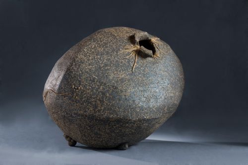 Anatsui’s ceramic sculpture from 1978, Omen, explores how brokenness can somehow inspire new life and healing. From the small burst of an opening to the coating of manganese that speckles the surface formed from damaged ceramic pieces, Anatsui’s work can represent ideas about fragility and even political instability in Africa.