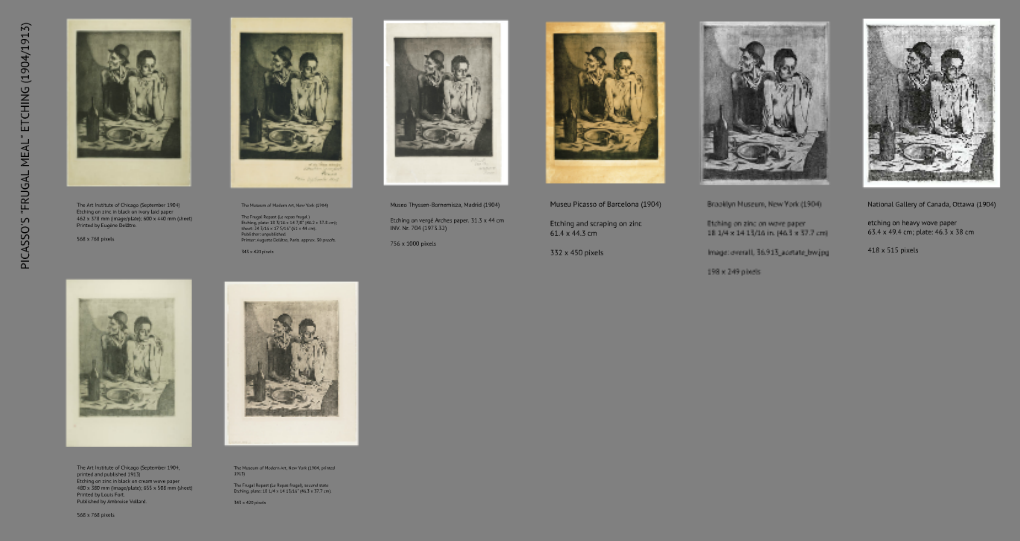 Comparisons of the varying qualities of images for Picasso’s “Frugal Meal” etchings as held by six different institutions.