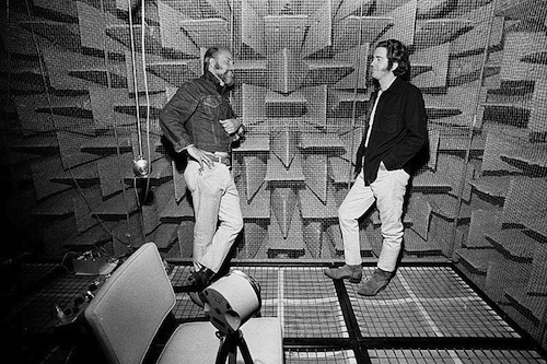 James Turrell and Robert Irwin in the anechoic chamber during their collaboration with Garrett Corporation. Courtesy Los Angeles County Museum of Art.