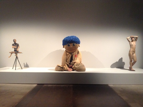 Curator of the Eighth Gwangju Biennale (2010), the Fourth Berlin Biennial (2006), and Manifesta 5 (2004), and now Associate Director of the New Museum in New York, Gioni is no stranger to curating large-scale exhibitions. For the Venice Biennale, however, he says he attempted to change the rules by mining new strategies and display formats, and by learning directly from artists. Little surprise, then, that Gioni invited Mark Leckey to exhibit a virtual rendition of the aforementioned techno-atavistic show the artist recently organized, as well as Cindy Sherman to curate a subsection of the biennale. Sherman’s “exhibition within an exhibition” is a survey of works of the human body: Charles Ray’s disturbingly oversized mannequin of a business woman, Duane Hanson’s unnervingly lifelike polyvinyl sculpture of one of his neighbors, and John DeAndrea’s oil-painted bronze cast of a classical female nude are but a few examples. Her presentation is disconcertingly similar to Mike Kelley’s curatorial venture of 1993, The Uncanny (see my second travelogue entry), which not only included some of the same artists and pieces—for instance, Paul McCarthy’s Children’s Anatomical Educational Figure (1990), a giant ragdoll whose internal organs spill out of its stomach—but also featured a photographic series of mannequins and prosthetics by Sherman herself.