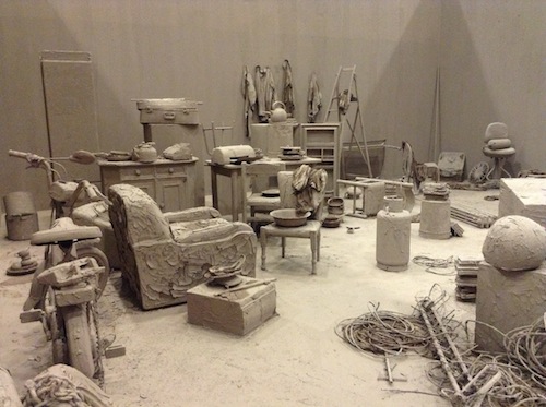 This year’s presentation was, true to its nature, full of the spectacle-driven works that have proliferated since the 1990s, namely immersive and black box environments. Marlborough gallery, for instance, offered up Artichoke Underground (2013), a maze-like spatial collage by Jonah Freeman and Justin Lowe, which encouraged visitors to pass through a disorienting series of what looked like intricately assembled film sets for an imaginative dystopic picture. Galleria Continua also had on display a bleak post-apocalyptic habitat. The last work in a stunning series Chinese artist Chen Zhen made before his death in 2000, Purification Room consists of domestic objects entirely covered in earth, a naturally generated material he thought was capable of cleansing the world. Zhen described it as an “archeology of the future.”