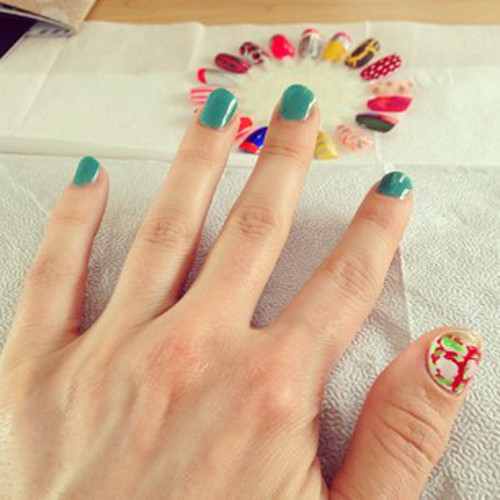 A few weeks ago, multimedia artist Breanne Trammell invited me inside her 1968 Shasta Compact trailer for a manicure. Trammell, a New York state-certified nail technician, selected a brilliant teal for my nails, with the exception of one nail on each hand. These two nails were custom painted to resemble slices of pizza: red tomato sauce peeking out from under white blobs of mozzarella cheese, topped with green chili peppers, finished with a gold, sparkly crust. Within thirty minutes, I had received an artisanal manicure and a letter-pressed certificate of authenticity. I was the tenth completed manicure on Trammell’s quest to reach 500 people as part of her experiential art project called Nails Across America.