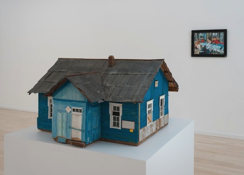 A similar elision of lived and imagined experience occurred in Braden’s fall 2012 exhibition, Agence de Voyage, at Ambach and Rice. Among the works on display were oil or gouache paintings of everyday scenes; weathered signs for places like Hotel Badr and Restaurante Jorge Americano (the latter listing humble offerings like omelete and bife de porco); and a model of a rustic cabin. All of them were so richly rendered as to make you feel like you were there, however vague “there” might be.