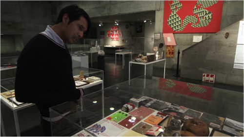 Barry McGee at the Berkeley Art Museum and Pacific Film Archive during his 2012 retrospective exhibition. Production still from the series Exclusive. © Art21, Inc. 2013. Cinematography by Bob Elfstrom.