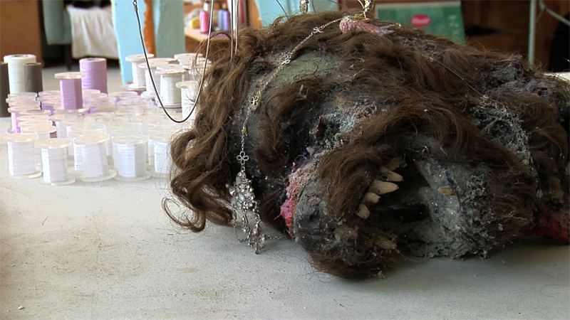 A head sculpture by David Altmejd in his Queens, New York studio, 2011. Production still from the series Exclusive. © Art21, Inc. 2013. Cinematography by Jarred Alterman.