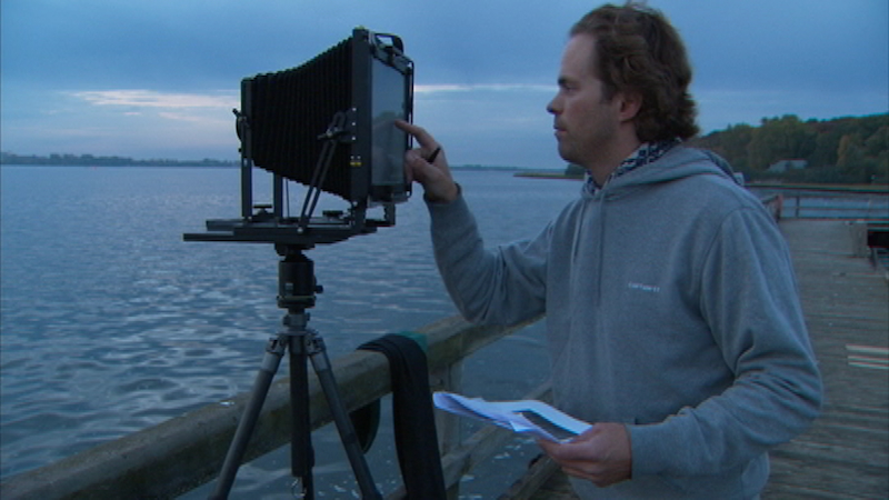 Florian Maier-Aichen takes photographs in Stralsund, Germany, 2008. Production still from the Art in the Twenty-First Century Season 5 episode, Fantasy, 2009. © Art21, Inc. 2009.