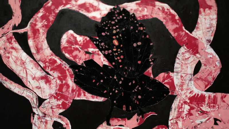 Ellen Gallagher, detail of an untitled painting (2013) that was exhibited at the New Museum, New York, NY in 2013. Production still from the series Exclusive. © Art21, Inc. 2014. Cinematography: Rafael Salazar
