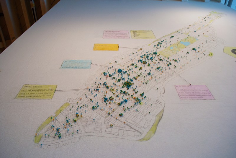 Ingrid Burrington. Installation of the Center for Missed Connections, 2009–2011. Burrington’s maps loneliness in cities, using the “Missed Connections” section of Craigslist as her primary data source. Courtesy the artist.