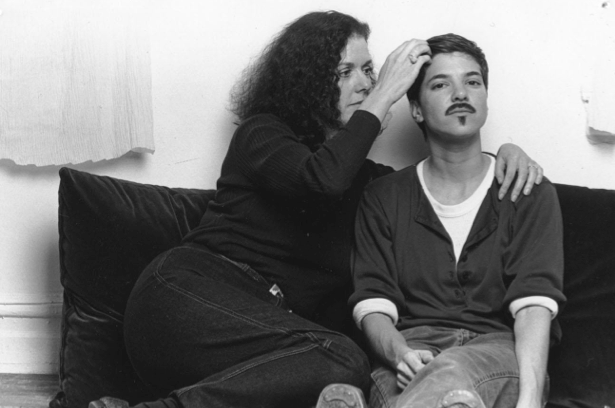 The photograph of Ross and her mother in bed was taken in Ross’s parents’ Miami Beach home in the early 1990s. The whole house was apparently mirrored—very ’80s Miami. At that time in New York, where Ross still lives, the drag king scene was just starting to come up in a real way [1]. Ross, an out lesbian entrenched in the queer community, had started to play with images of herself in different gender presentations, in her photography, outside of the nightlife realm in which this gender play was deemed acceptable. She employed the very controlled space within her photographs to explore the fantasy of crossing very off-limits boundaries.
