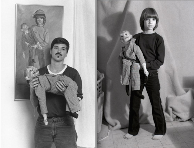 (left) Lisa Ross. Grown with Mortimer and Original Painting, 1993. (right) Lisa at 10 with Mortimer Schnerd, 1974; reprinted 1993. Both photographs by Susann Ross; silver gelatin print; 40″ x 60″. Courtesy of Lisa Ross.