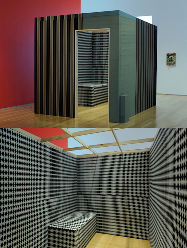 DO: Textiles are very intimate and personal. We wrap our bodies in them, like you say, making them potentially very erotic as well. While there’s a living-room-fort playfulness to your sculptures, I can’t help but read sexual possibility into the dimly lit passageways and narrow corridors within them, particularly when there are ecstatic interiors at the core. To me, you’re blending the slumber party with the sex club—and maybe they aren’t that different to begin with. Even the name of your 2012 solo show at the Nerman Museum of Contemporary Art, a hole-in-the-wall country, sounds like a rural, gay dive bar.