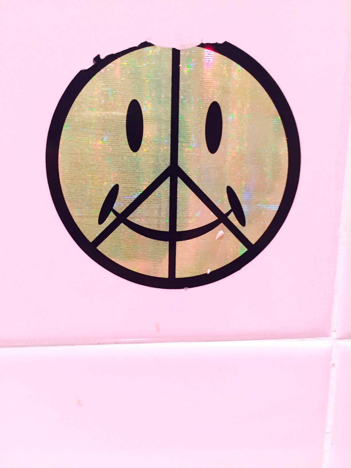 My middle-school best friend Eleanor and I would sneak out in the middle of the night, go to the car dealership, spray-paint a moustache, sad face, and teeth onto the smiley face, and then run back to her house—our “fuck you” to that saccharine symbol of happiness. The owners of the dealership never caught us, but they did paint yellow over our black graffiti, multiple times. The smiley face was their business logo, and they needed to keep it happy.