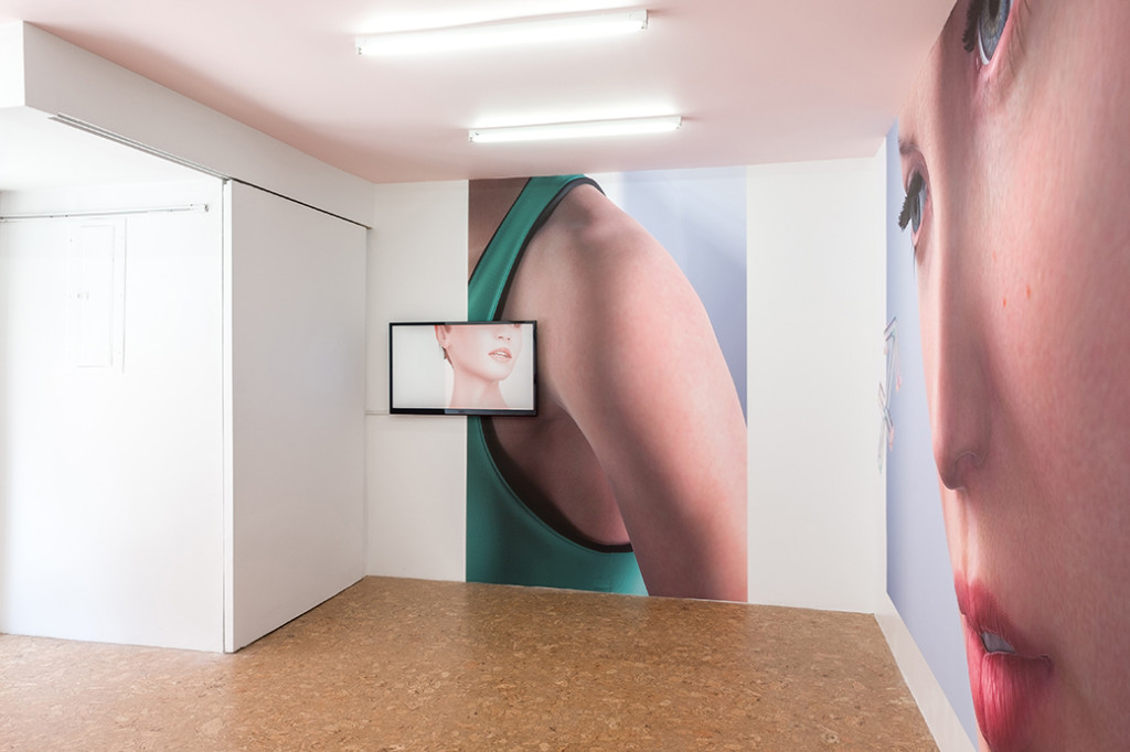 The prediction-based suggestions of QS don’t give you as much control, or pleasure, as QS devotees describe. Kate Cooper’s work Rigged presents digital prints and video of a computer-generated image of a young woman in fitness clothing. This CGI character is not flawless and has to work to be perfect, which is rare for tech videos. In the first shot, she wears a retainer-and-braces-like mouth contraption that seems painful. Working on controlling herself through data has not brought her happiness, and she has worked hard at perfecting her body—there is digital sweat—only to want to be rid of it. She wishes to “disappear completely” because she has become “a multiplicity of beings,” as she says in the video component of Rigged. She has worked to look healthy, to the point that her skin, she says, can be implanted on another self in the future. “Skin,” she says in the video, is “the only object l have left.” Her aim? To “disappear completely” because, through the many versions of selfhood she has become “a multiplicity of beings.”