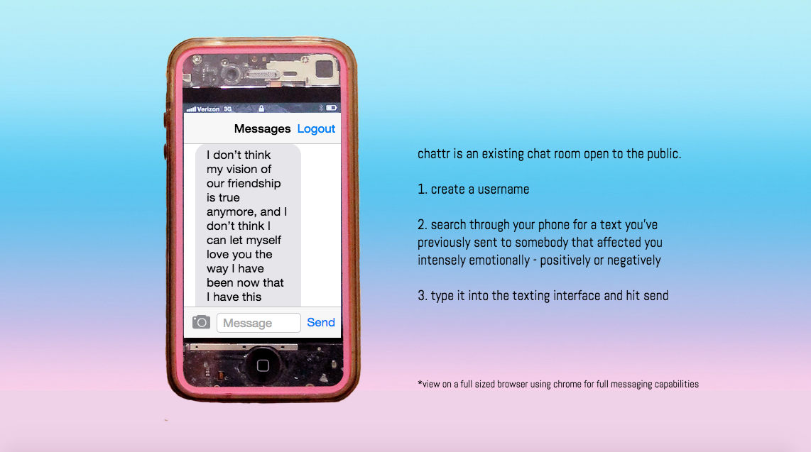 Although the work’s desktop interface cannot convey the physical intimacies of holding a smartphone, through it a certain remembrance lingers. The ritual of grasping a ubiquitous object to impart a transference of memory carries with it an unexplained sentience, a sort of uneasy déjà vu, similar to what I had experienced in my dream. This work offers participants a sympathetic, uncensored point of view through sharing private messages with strangers. Caring for our digital objects, and their contents and methods, means accepting these systems as embodiments of our personal experiences. In his essay, “Archivist Manifesto,” the Chinese theorist Yuk Hui positions the personal archive as an extension of the psyche in a Foucauldian sense, meriting responsibility and cautious protection. Hui writes: “Care is not only, as we say in our daily life ‘taking care of something’ but also a temporal structure that creates a consistent milieu for ourselves…At the heart of the question of [the] archive is the question of care, and in order to care, one must think of the archive as the exteriorization of our memories, gestures, speeches, movements.”[1] In this vein, archiving can instead become a practice of self-care to a demographic of individuals conditioned to self-actualize through data dissemination. Subliminally transcending traditional notions of care (say, the physicality of touch) within networked digital spaces is the needed association that could liberate our digitally encoded memories from their capitalist constraints to resemble individuality, thus abandoning collective efficiency in favor of a more unique self-awareness. Hui’s manifesto continues to call for a development of a noncommercial platform that could allow “archivists” rather than “users” to freely share personal data, suggesting welcoming parallels to the passé notion that Internet interactions cannot result in close relationships.